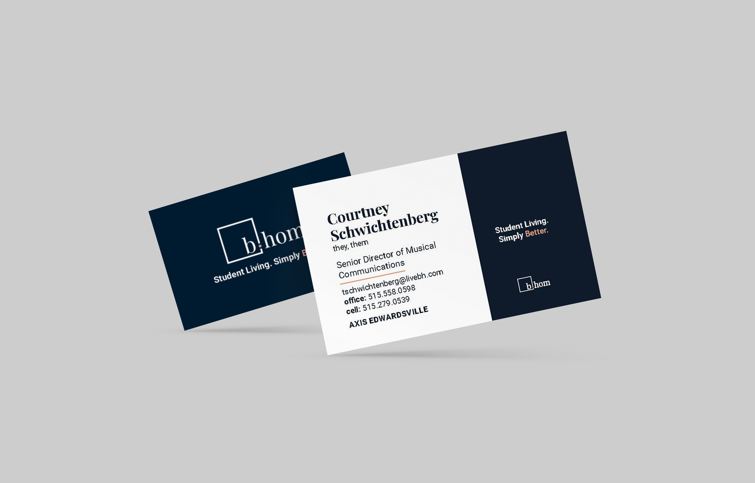 As B.HOM operates within the umbrella of BH, it was crucial for the two brands to cohesively collaborate. To achieve this unified brand identity, I integrated the BH frame into the B.HOM logo. Also, to ensure a seamless visual identity, I opted for a single, prominent accent color for B.HOM that blends with the established BH color palette.