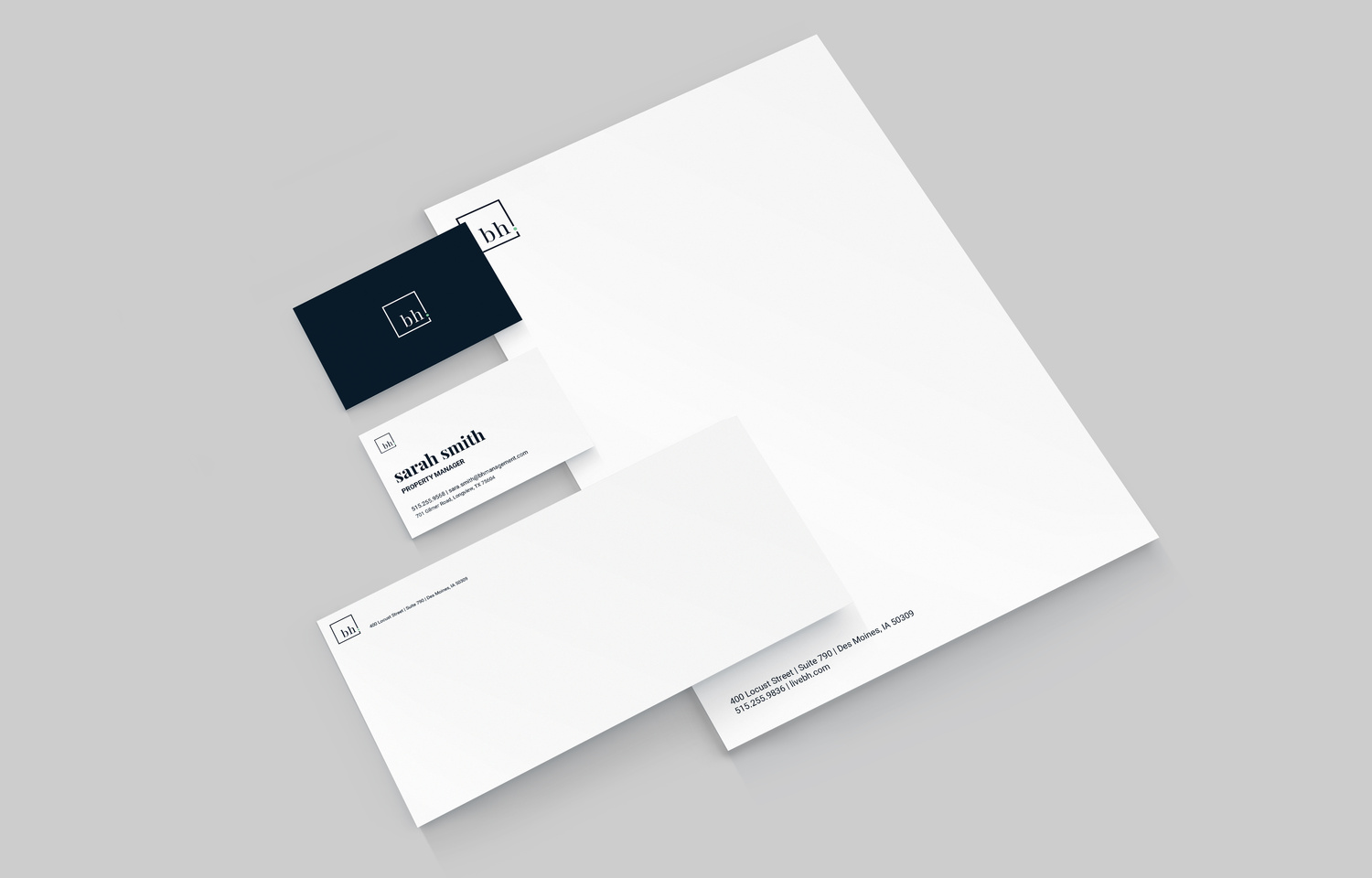 I worked diligently to ensure the cohesiveness of the BH brand, employing the logo frame as a prominent graphic element across all materials.