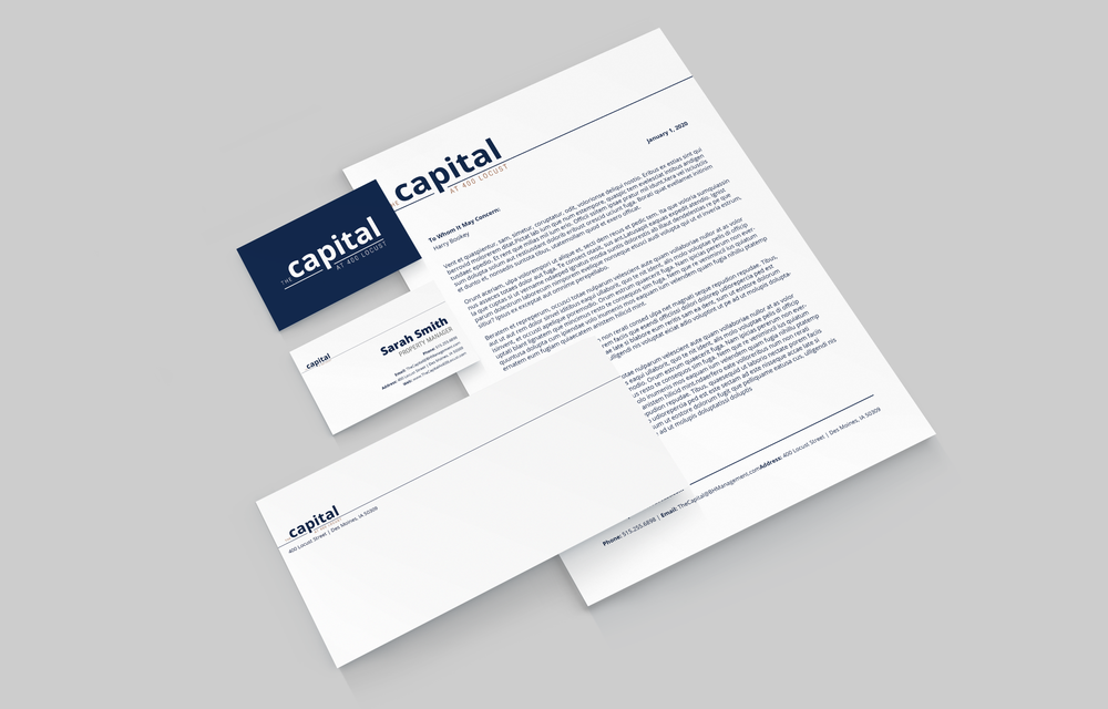 I undertook the task of building a property brand from the ground up for The Capital at 400 Locust. The owner’s objective was to establish a modern and trendy aesthetic that also had a lasting appeal.